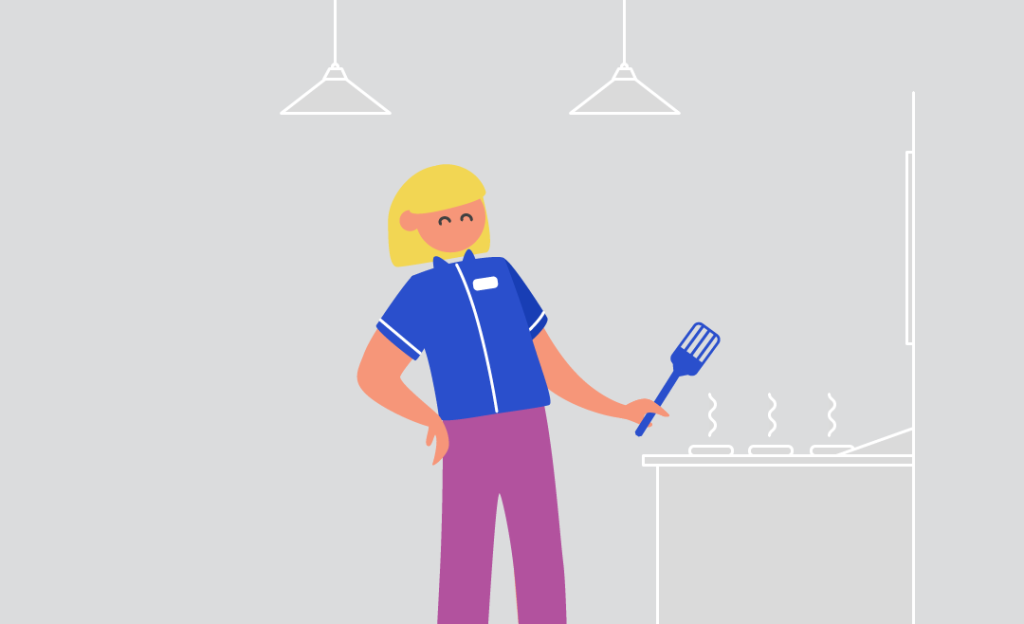 Illustration of staff member sitting at her work desk