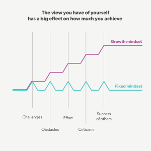 If we believe our skills and abilities can develop and improve, we have a growth mindset. If we believe our skills and abilities are personal traits that don’t change, we have a fixed mindset.