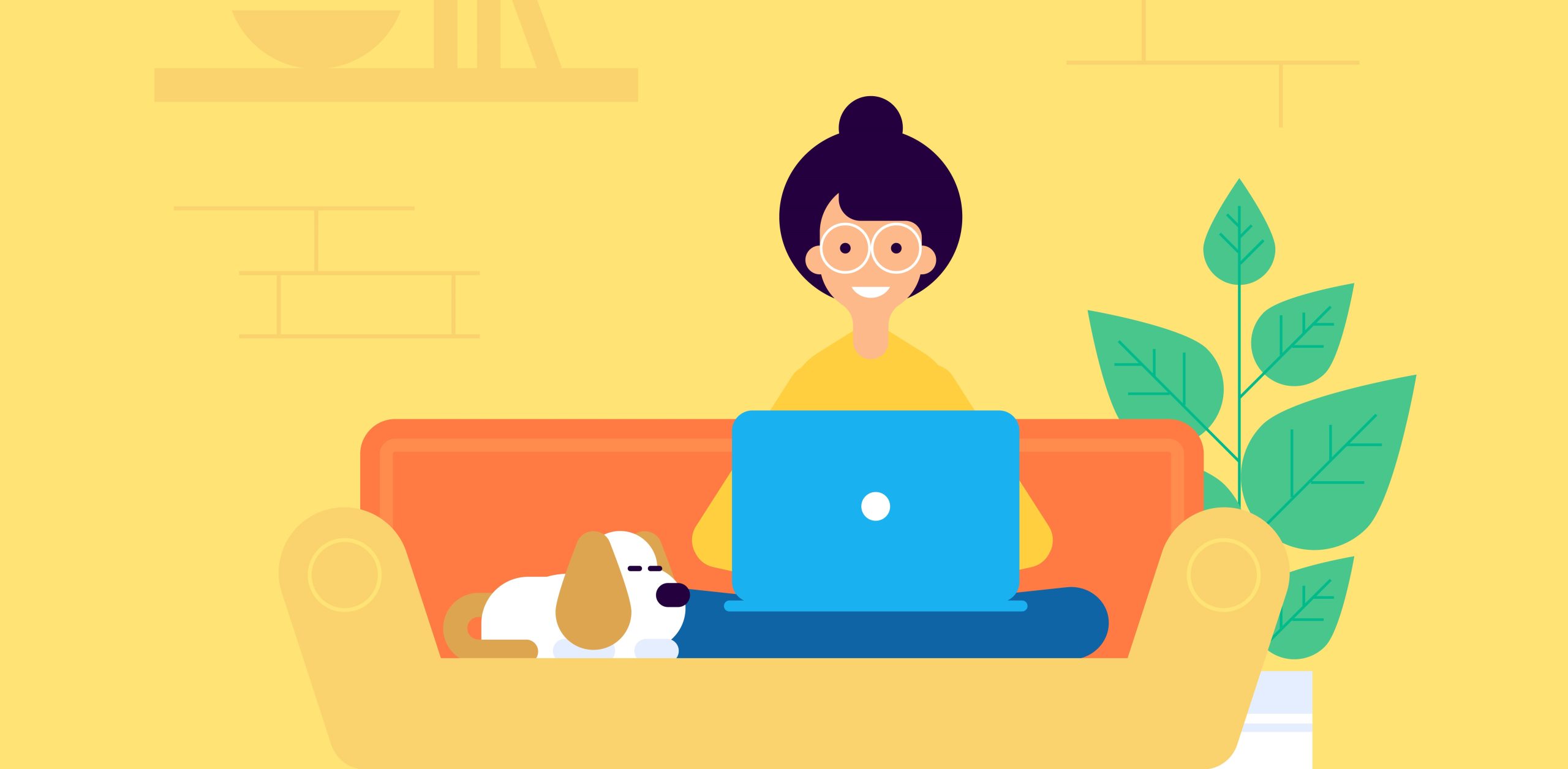 Illustration of staff member sitting at her work desk